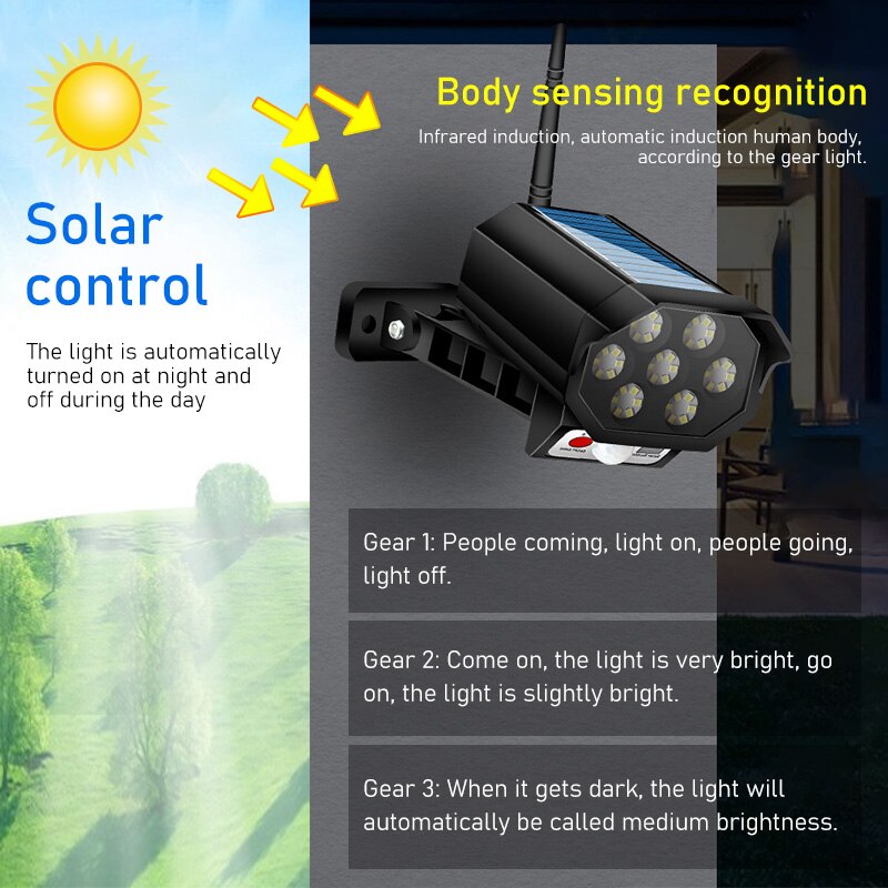 Mini Αδιάβροχο Ηλιακό 42 LED Φωτιστικό Δρόμου & Ομοίωμα Κάμερας Ασφαλείας Dummy με Φωτοκύτταρο, Αισθητήρα Κίνησης & Τηλεχειριστήριο - Μαύρο
