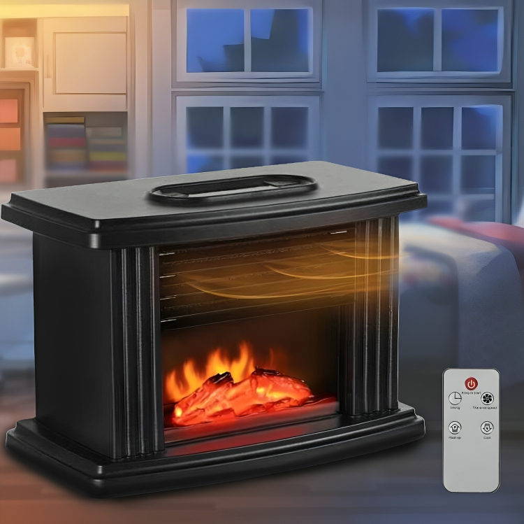 Μίνι Αερόθερμο Τζάκι 1000W με Εφέ Φλόγας & Τηλεχειρισμό - Flame Heater - 23 x 13 x 16cm