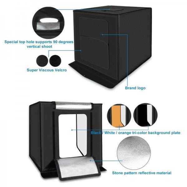 - Με LED εσωτερικό φωτισμό για την αποφυγή ενοχλητικών σκιών στα αντικείμενα που θέλετε να φωτογραφίσετε.