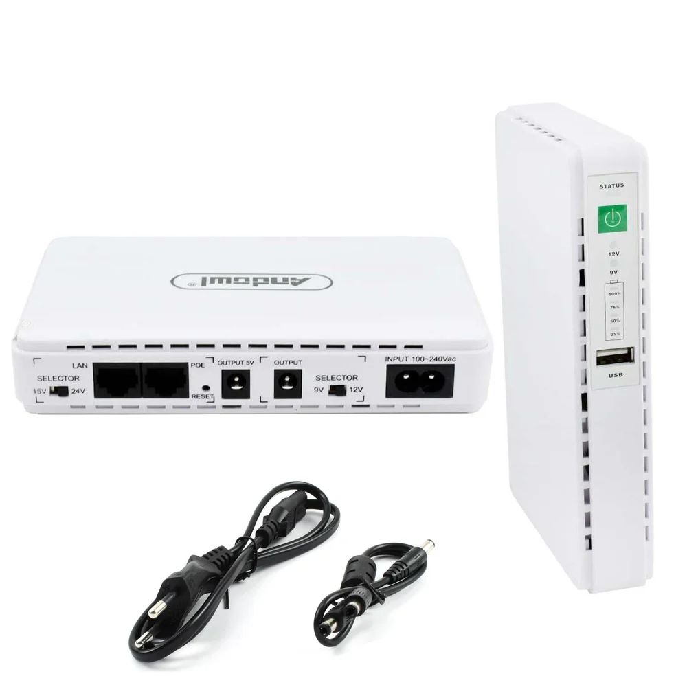 - 1 x Μίνι Φορητό Δικτυακό DC UPS RJ-45 25W 98000mAh USB - Λευκό