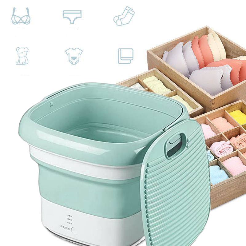 Μίνι Φορητό Πλυντήριο Αναδιπλούμενο USB Ταξιδιού για Απολύμανση με Όζον - Foldable Washing Machine Πράσινο