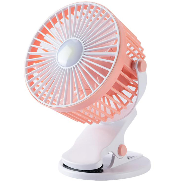 Μίνι Φορητός Επαναφορτιζόμενος Επιτραπέζιος Ανεμιστήρας USB 14cm με 3 Ταχύτητες - COB LED & Βάση Στήριξης με Κλίπ - Ροζ