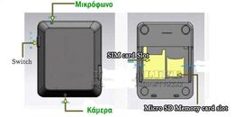 Παίρνει κάρτα SIM οποιασδήποτε εταιρίας κινητής τηλεφωνίας και κάρτα Micro SD μέχρι 8GB (δεν περιλαμβάνεται). 1GB = 400 ώρες καταγραφής ήχου, 3 ώρες video, 16.000 φωτογραφίες.