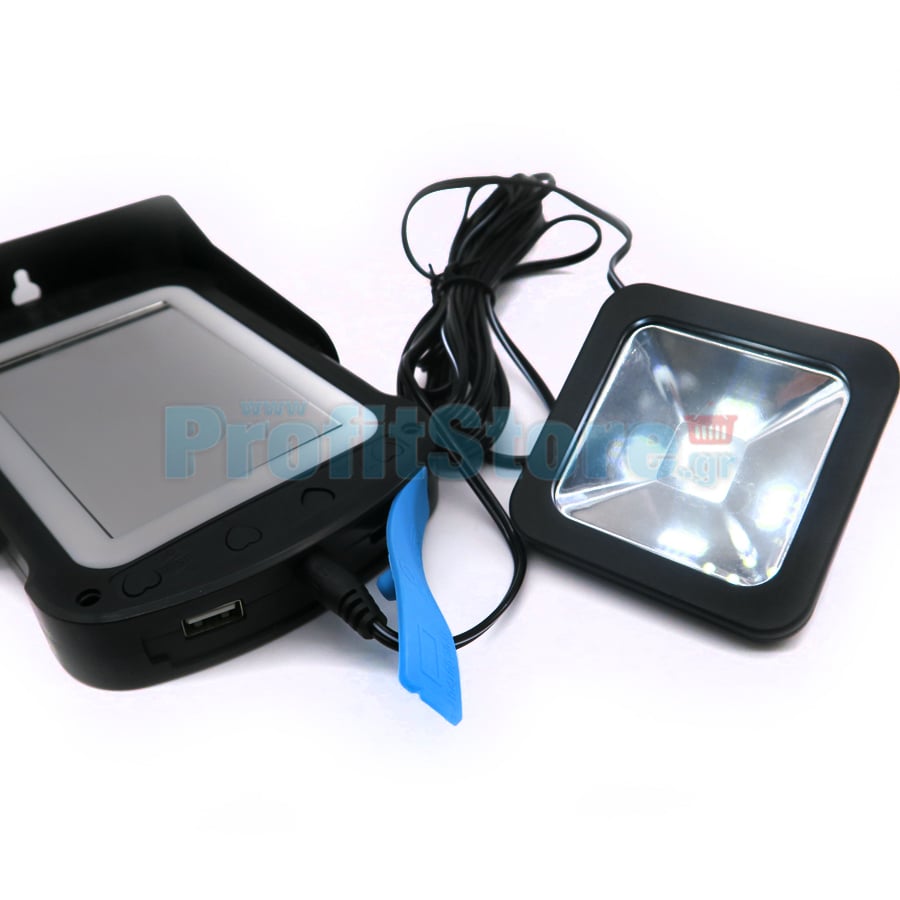 Πλήρες ηλιακό πακέτο φωτισμού μικρών διαστάσεων με ηλιακό panel, καθρέφτη με φωτισμό LED και θύρα USB για φόρτιση συσκευών! Ακόμα, στο σετ περιλαμβάνεται μία λάμπα LED με μακρύ καλώδιο μήκους 3.5μ.