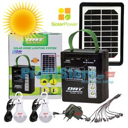 Πλήρες φορητό ηλιακό AC κιτ βαλιτσάκι με ηλιακό panel, φωτιστικό LED και πολυφορτιστής κινητών και USB συσκευών + 2 λαμπτήρες 6V, μεγάλης φωτεινότητας 100 Lumens.