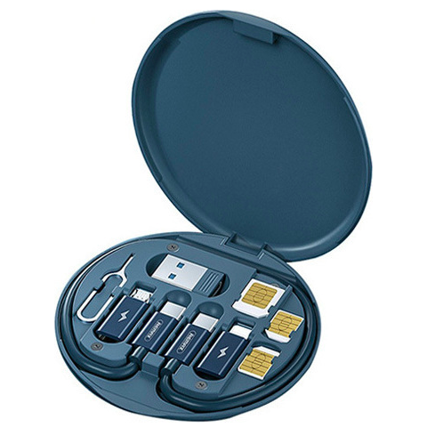 Mini κασετίνα με καλώδιο USB Type-C 29cm και αντάπτορες σε Micro USB, Lightning και κανονικό USB, ακίδα αφαίρεσης sim μαζί με θήκες αποθήκευσης sim, μια micro sim και δυο nano sim. Το καλύτερο gadget για τεχνικούς αλλά και καθημερινούς χρήστες!