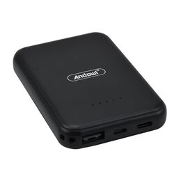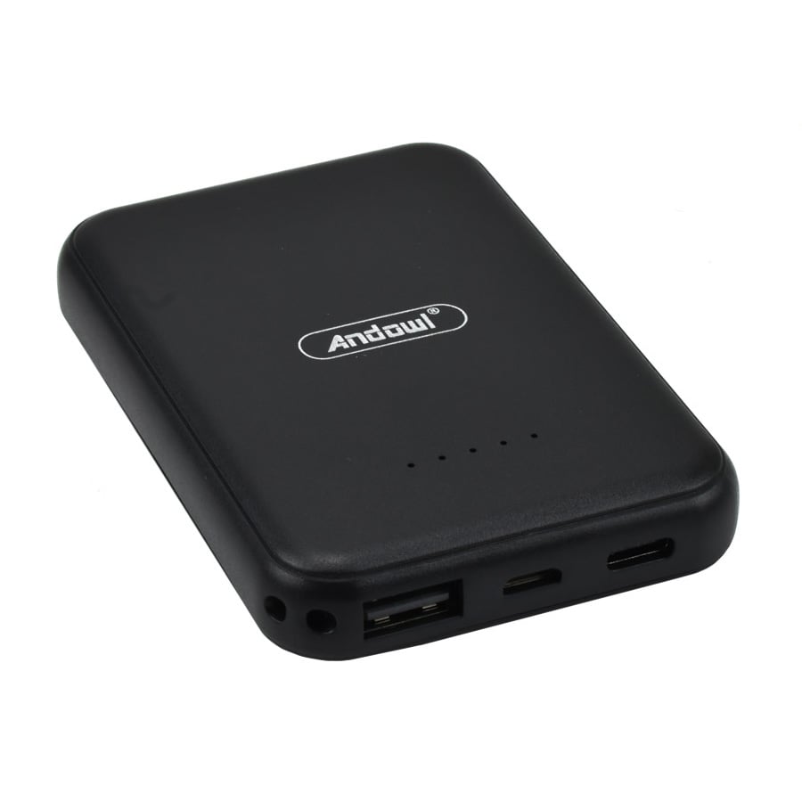 - 1 x Μίνι Power Bank 6000mAh Ασύρματης Φόρτισης & με Υποδοχές USB-A, Type-C, Micro USB - Μαύρο