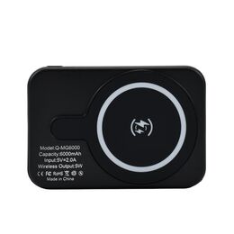 Μίνι Power Bank 6000mAh Ασύρματης Φόρτισης & με Υποδοχές USB-A, Type-C, Micro - Μαύρο