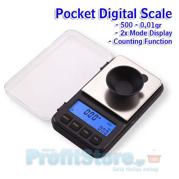 Ψηφιακή ζυγαριά ακριβείας τσέπης με ακρίβεια από 0,01 του γραμμαρίου. Μέτρηση μέχρι και 500γρ.
