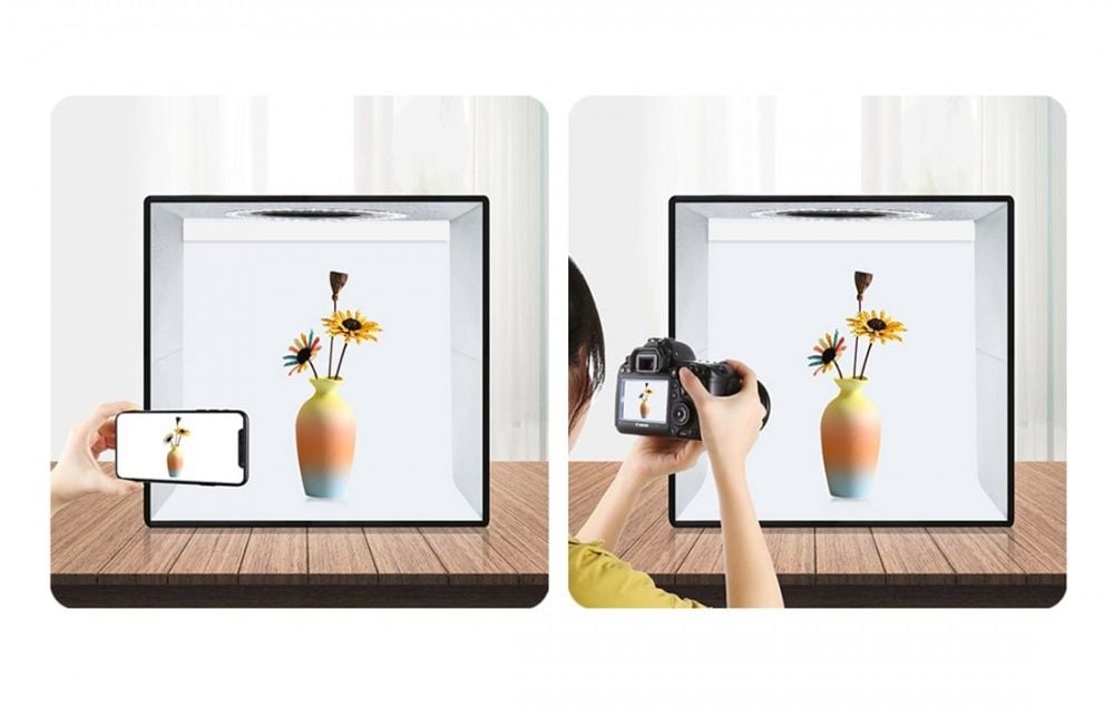 Η τέλεια φωτογραφία χρειάζεται και τον ιδανικό εξοπλισμό… Με το φωτογραφικό στούντιο με ενσωματωμένο Ring LED ετοιμαστείτε για επαγγελματικές φωτογραφίες, χωρίς σκιές και σκοτεινά σημεία.