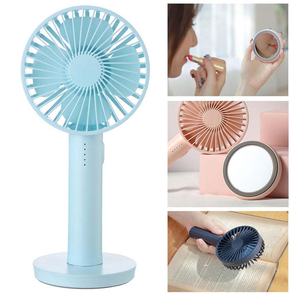 Μίνι USB Επαναφορτιζόμενος Φορητός Ανεμιστήρας με Βάση Καθρέφτη - Makeup Mirror Handheld Fan Γαλάζιο