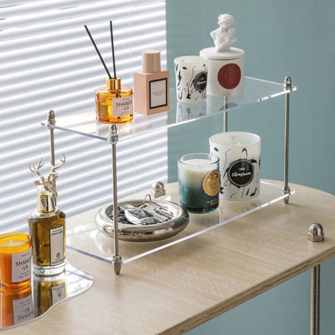Minimal Μικρή Ραφιέρα Μπάνιου 2 Επιπέδων Ακρυλλική με Μεταλλικό Σκελετό
