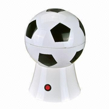 Διασκεδαστική και απλή στην χρήση, αυτή η μηχανή ποπ κορν σε σχήμα ποδοσφαιρικής μπάλας υπόσχεται να ετοιμάσει αφράτα και τραγανά ποπ κορν μέσα σε 4 μόλις λεπτά, και μάλιστα πολύ υγιεινά, αφού δεν χρειάζεται λάδι παρά με ζεστό αέρα. Χωράει μέχρι 100γρ. καλαμπόκι σε κάθε δόση.