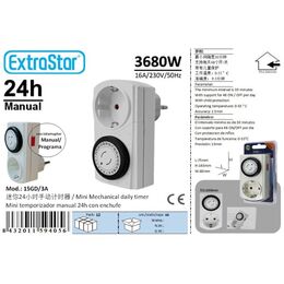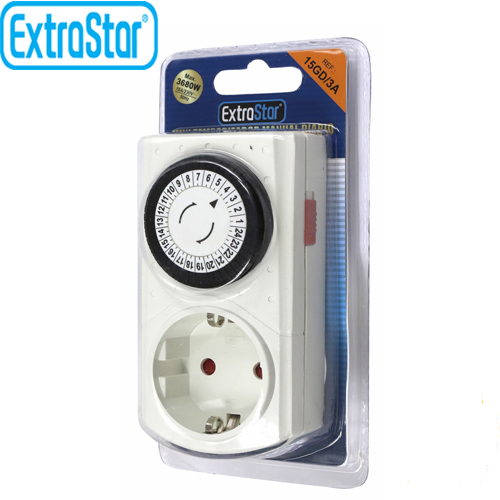 Μονή πρίζα ExtraStar με προγραμματιζόμενο χρονόμετρο 24 ωρών. Μια πολύ χρήσιμη συσκευή, που εξυπηρετεί στο να ελέγχετε την κατανάλωση της ηλεκτρικής σας ενέργειας, είτε βρίσκεστε στο σπίτι σας, είτε λείπετε σε διακοπές!