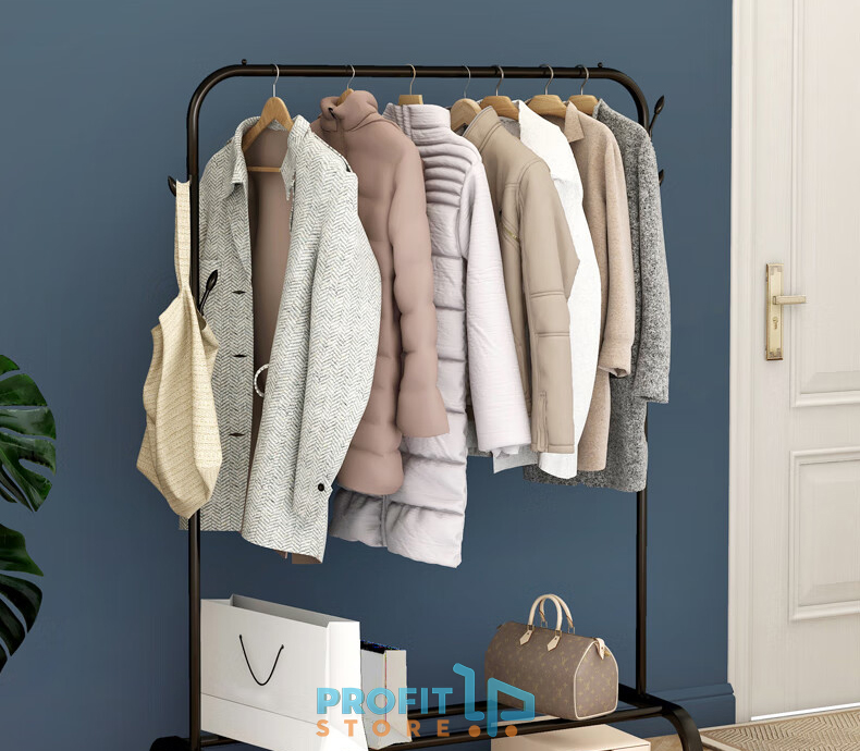 Λειτουργική και κομψή κρεμάστρα μονού πόλου κρεμάστρα με παπουτσοθήκη - ραφιέρα & καλόγερο. Οι σωλήνες είναι εξαιρετικής ποιότητας με ενισχυμένο μέταλλο για αντοχή και σταθερότητα.