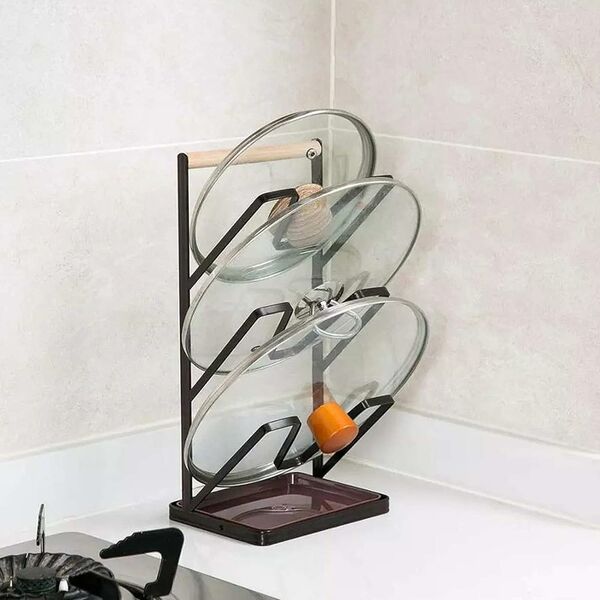 Μεταλλική θήκη- βάση για καπάκια κατσαρόλας σε μαύρο χρώμα με μοντέρνο και minimal σχεδιασμό