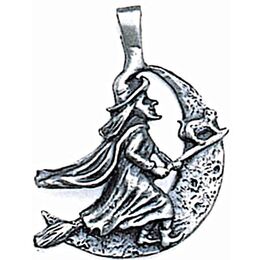 Η παραδοσιακή μάγισσα με τη μαύρη γάτα της πετάει στο φεγγάρι για τις προσωπικές σας επιθυμίες. Αυτό το φυλαχτό λέγεται ότι φέρνει στο κάτοχό του Καλή Τύχη και Μαγικές Ικανότητες.