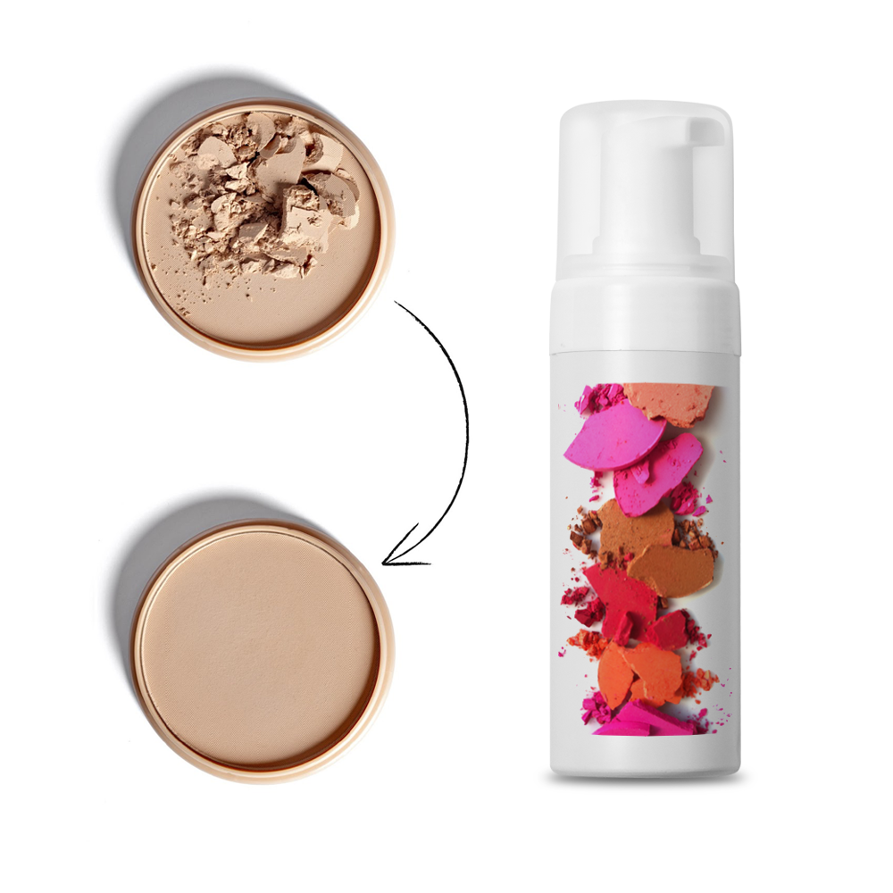 Σας φέραμε το νέο επαναστατικό μους - υγρό επισκευής Makeup! Είναι κατάλληλο για σκιές ματιών, πούδρες, ρουζ, μπρονζερ, foundations, highlights και άλλα προϊόντα σε μορφή συμπιεσμένης σκόνης!