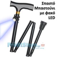 Πρωτότυπο και λειτουργικό πτυσσόμενο μπαστούνι με ισχυρό φακό LED απαραίτητο για πεζοπόρους, ορειβάτες, φυσιολάτρες και ηλικιωμένους. Ελαφρύ - Ανθεκτικό - Πτυσσόμενο - Πολυχρηστικό.