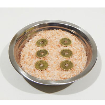 Βάζετε το αλάτι Ιμαλαΐων στο μεταλλικό μπολ, τοποθετείτε τα 6 κινέζικα νομίσματα και στη συνέχεια το γεμίζετε με νερό. Το τοποθετείτε στο ανατολικό ή βορειοανατολικό σημείο του σπιτιού σας και το αφήνετε εκεί για ένα χρόνο.
