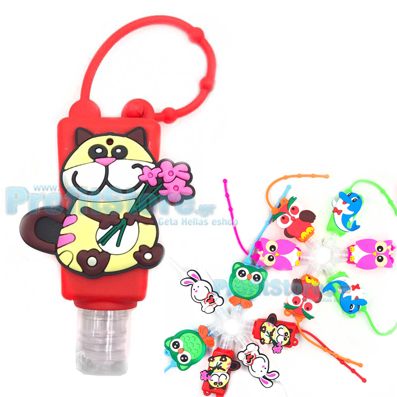 Όμορφα μικρά μπουκαλάκια σιλικόνης με διάφορα σχέδια, για να έχουν τα παιδιά σας πάντα μαζί τους αντισηπτικό τζελ!