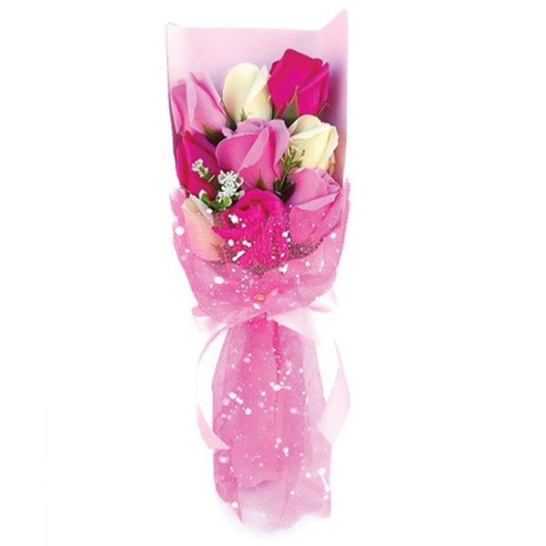 Μπουκέτο με Πολύχρωμα Τεχνητά Ροζ Τριαντάφυλλα σε Συσκευασία Δώρου 36cm