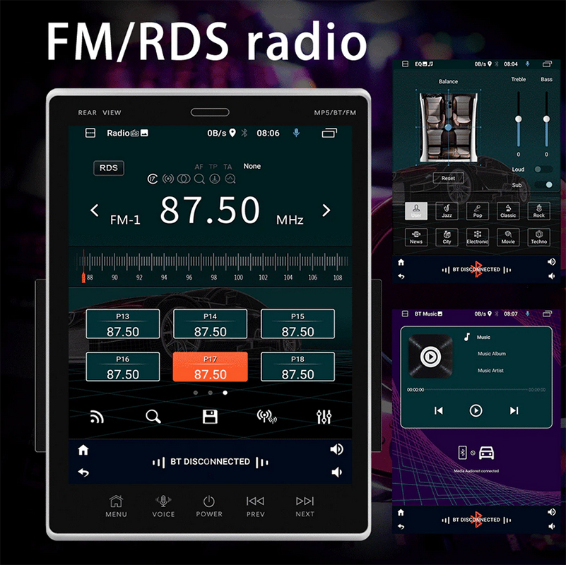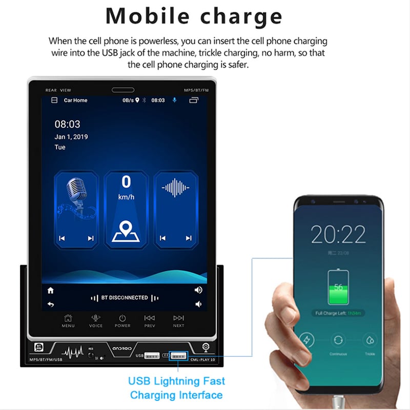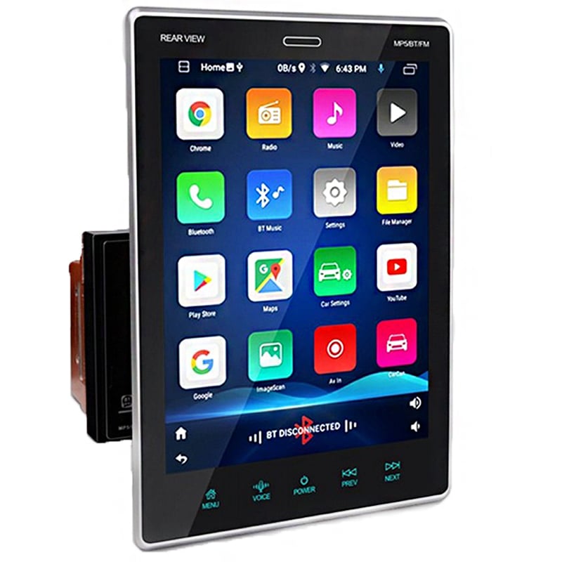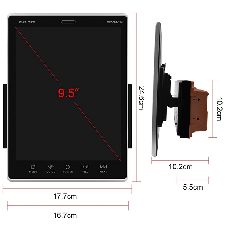Μεγάλη Ρυθμιζόμενη καθ' ύψος multimedia οθόνη αφής αυτοκινήτου 9.5 ιντσών, με λειτουργικό σύστημα Android 10 και ενσωματωμένο Ελληνικό GPS πλοηγό και μενού.