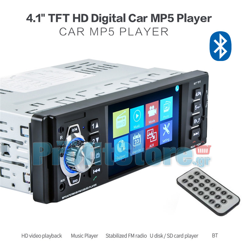 Multimedia Οθόνη 4.1" & Ηχοσύστημα Αυτοκινήτου TFT 1 Din Bluetooth Handsfree MP5, MP4, MP3, USB, SD, FM, AUX, με Τηλεχειριστήριο - Ενισχυτής 4x45W