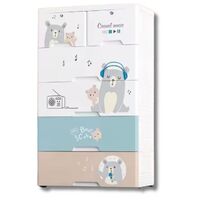 Παιδική πλαστική συρταριέρα 100 x 50 x 38 cm με 6 συρτάρια και χαριτωμένα σχέδια αρκούδων ή ζωάκια σε ροζ ή γαλάζιο χρώμα. Ιδανική για αποθήκευση ρούχων και παιχνιδιών. Ανθεκτική, ελαφριά και ασφαλής για παιδιά.