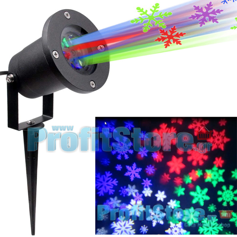 Νυχτερινός Αδιάβροχος Διακοσμητικός Χριστουγεννιάτικος Προβολέας Φωτισμός Χρωματιστές Χιονονιφάδες - Laser Προτζέκτορας