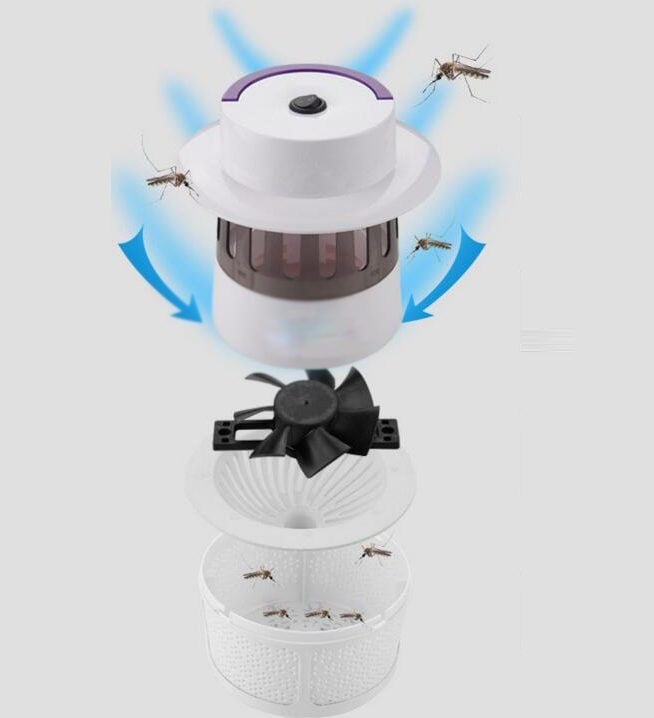Το μυστικό του επαναστατικού οικολογικού εξολοθρεφτή εντόμων αυτού, βρίσκεται στον αθόρυβο ανεμιστήρα που διαθέτει εσωτερικά, που ρουφάει τα έντομα στο εσωτερικό του και τα φυλακίζει εκεί.