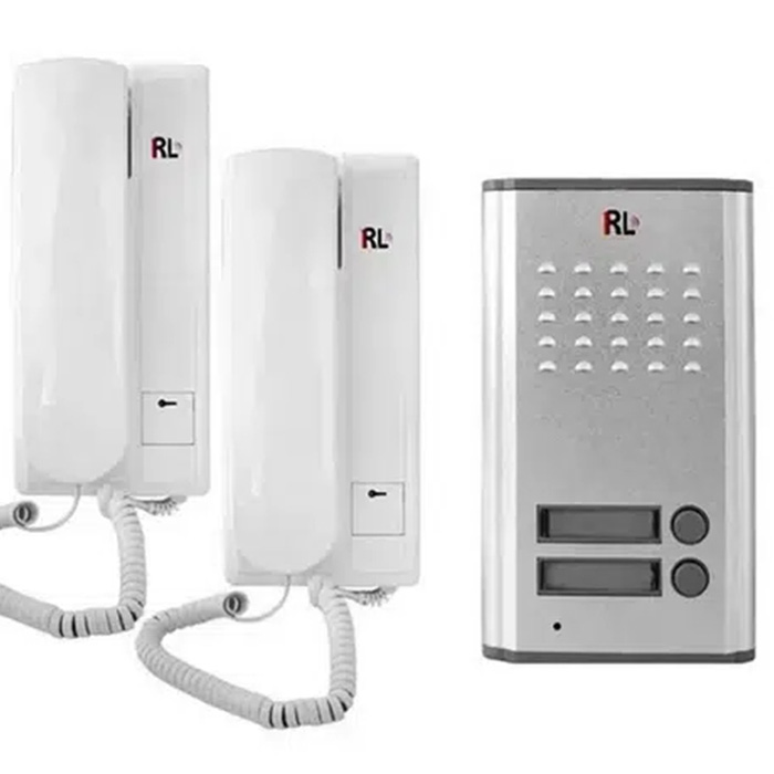 Σετ θυροτηλεφώνου με μπουτονιέρα και δύο ακουστικά.