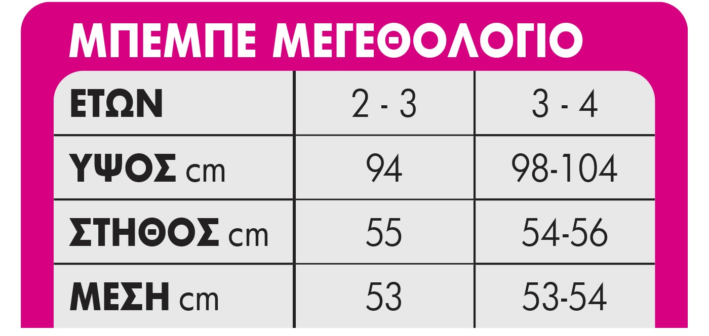 - Διαστάσεις: Διατίθεται για ηλικίες 3–4 ετών
