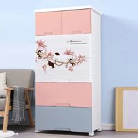 Παιδική πλαστική ντουλάπα με ζωηρά σχέδια, πολλαπλούς αποθηκευτικούς χώρους και ανθεκτική κατασκευή. Ιδανική για την οργάνωση παιδικών δωματίων, προσφέροντας εύκολη χρήση και καθαρισμό. Διατίθεται σε γαλάζιο-ροζ και μπεζ-λευκό χρώμα.