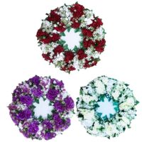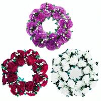 Διακοσμητικό στεφάνι 38cm με τεχνητά γαρύφαλλα και φυσικής όψης φύλλα. Ιδανικό για πόρτες, τοίχους ή τραπέζια. Δεν απαιτεί φροντίδα. Επαναχρησιμοποιήσιμο και κατάλληλο για εσωτερικούς και σκεπασμένους εξωτερικούς χώρους.