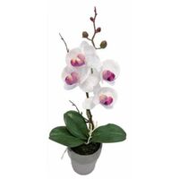 Τεχνητή διακοσμητική ορχιδέα λευκή 35.5cm σε γλάστρα – Ρεαλιστικός σχεδιασμός, υψηλής ποιότητας υλικά, μηδενική συντήρηση. Ιδανική για διακόσμηση σαλονιού, υπνοδωματίου, γραφείου, επαγγελματικών χώρων. Προσθέτει κομψότητα και φρεσκάδα χωρίς φροντίδα.