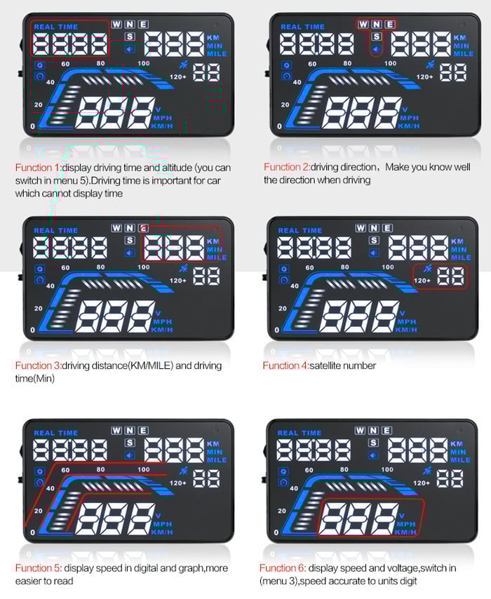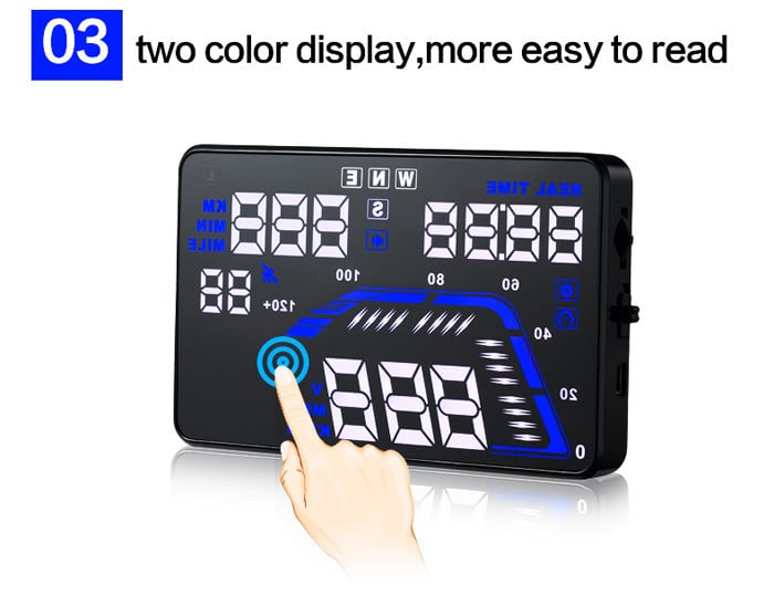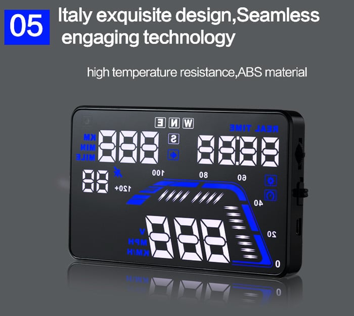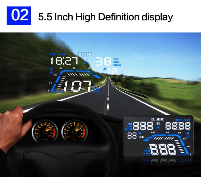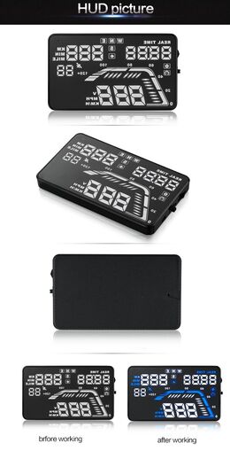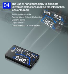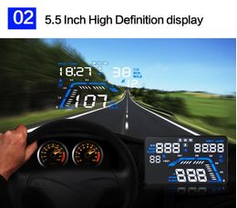 - Εμφανίζει την ταχύτητα, θερμοκρασία, κατανάλωση καυσίμου και άλλες πληροφορίες πάνω στο μπροστινό παρμπρίζ του αυτοκινήτου, στο επίπεδο των ματιών του οδηγού.