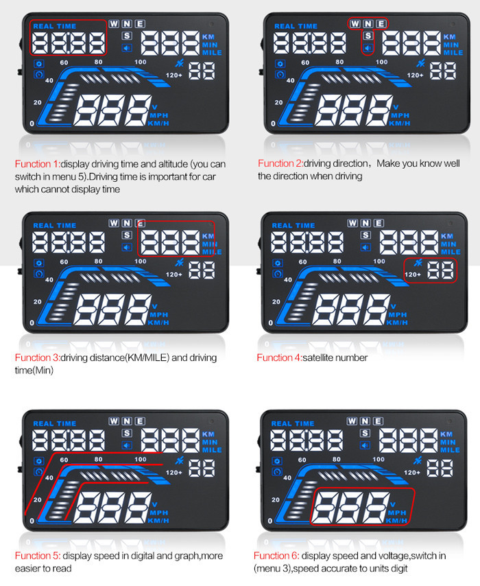 Αυτή η οθόνη Head Up είναι συντομογραφία HUD και μικρή Head Up Display, με την έννοια της «συσκευής Look-up display", ή “εμπρός-οριζόντια διάταξη οθόνης”. Θα μπορεί να προβάλλει σημαντικές πληροφορίες (π.χ. ταχύτητα οχήματος) πάνω στο μπροστινό παρμπρίζ στο ύψος των ματιών του οδηγού και έτσι να συμβάλει στο να είναι σώοι και αβλαβείς κατά την οδήγηση σε υψηλές ταχύτητες, ειδικά τη νύχτα.
