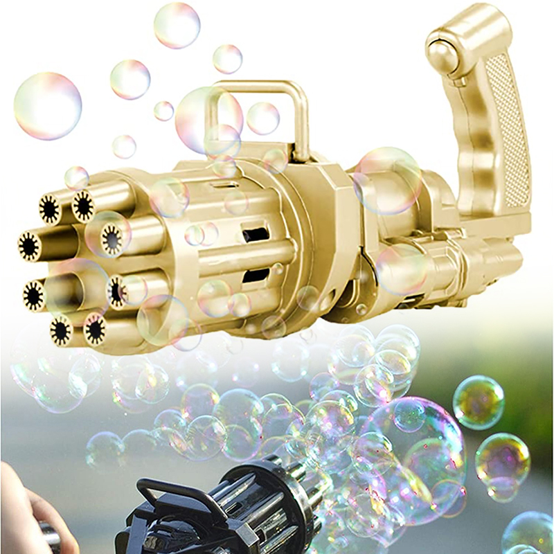 Οχταπλό Όπλο για Άπειρες Σαπουνόφουσκες Πολύχρωμες - Bubble Machine Gun - Συσκευή για Φυσαλίδες Χρυσό