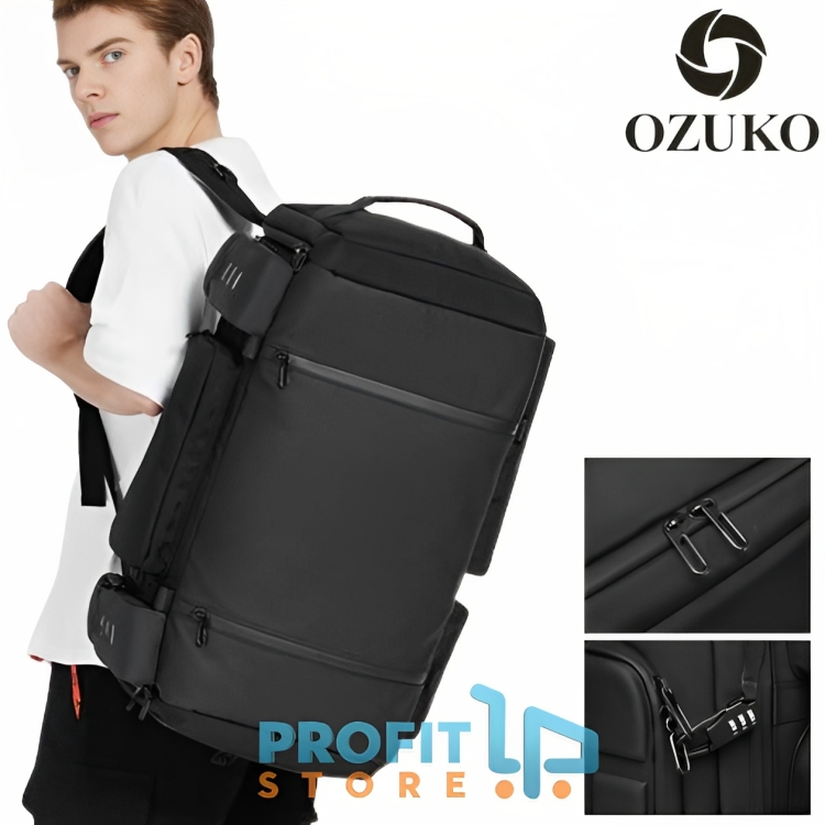 Ozuko Ανδρικό Πολυλειτουργικό Σακ Βουαγιάζ Αδιάβροχο - 60 Λίτρα - Μαύρο