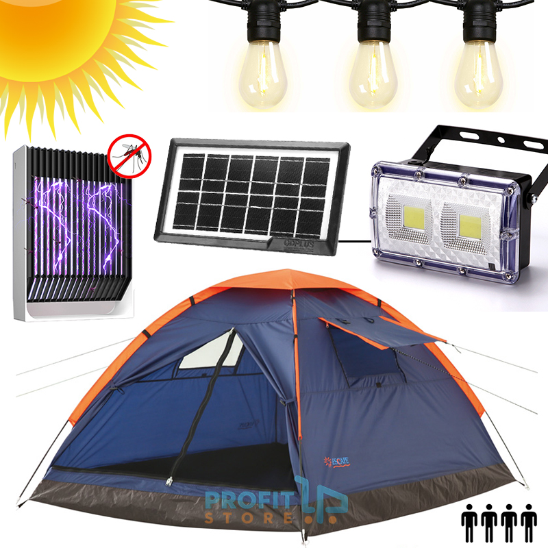4 ατόμων - Pack & GO CAMPING Set Πλήρες με Σκηνή Escape® UV-BLOCK - Ηλιακό Σύστημα Φωτισμού με Φωτιστικό, Φακό, Γιρλάντα με Λάμπες & Φορτιστή USB - Ηλεκτρικό Εντομοκτόνο Αντικουνουπικό με Μπαταρία