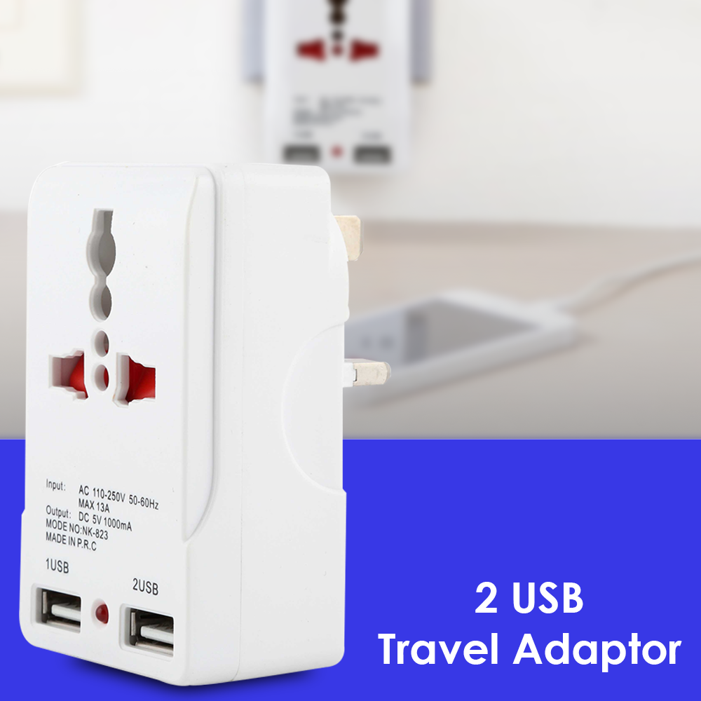 Παγκόσμιο - Διεθνές Πολύπριζο - Αντάπτορας Ρεύματος Ταξιδιού EU,UK,US, AU Plug & 2 Θύρες USB - Worldwide Universal Travel Adaptor