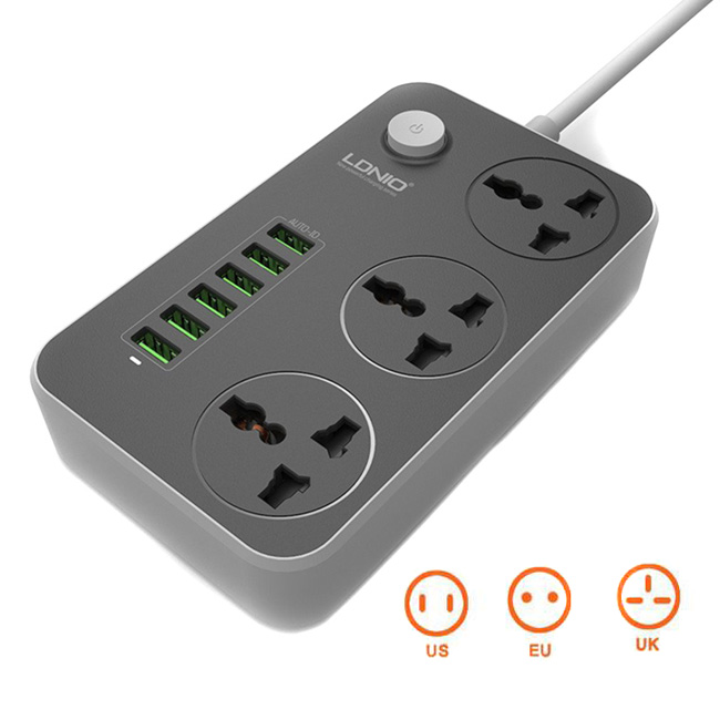 Παγκόσμιο Πολύπριζο Ταξιδιού Tripote Ασφαλείας 3 Θέσεων με 6 Θύρες USB 3.4A LDNIO