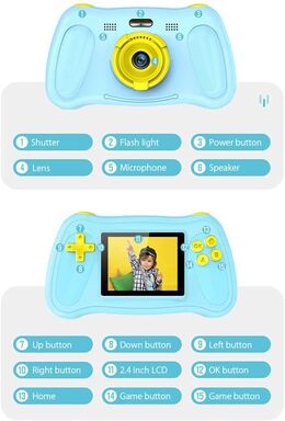 Παιδική Φωτογραφική Μηχανή/ Βιντεοκάμερα, Κονσόλα με 4 Παιχνίδια & Ηχείο για Μουσική - Kids Photo/Video Camera, Built-in Speaker & Games