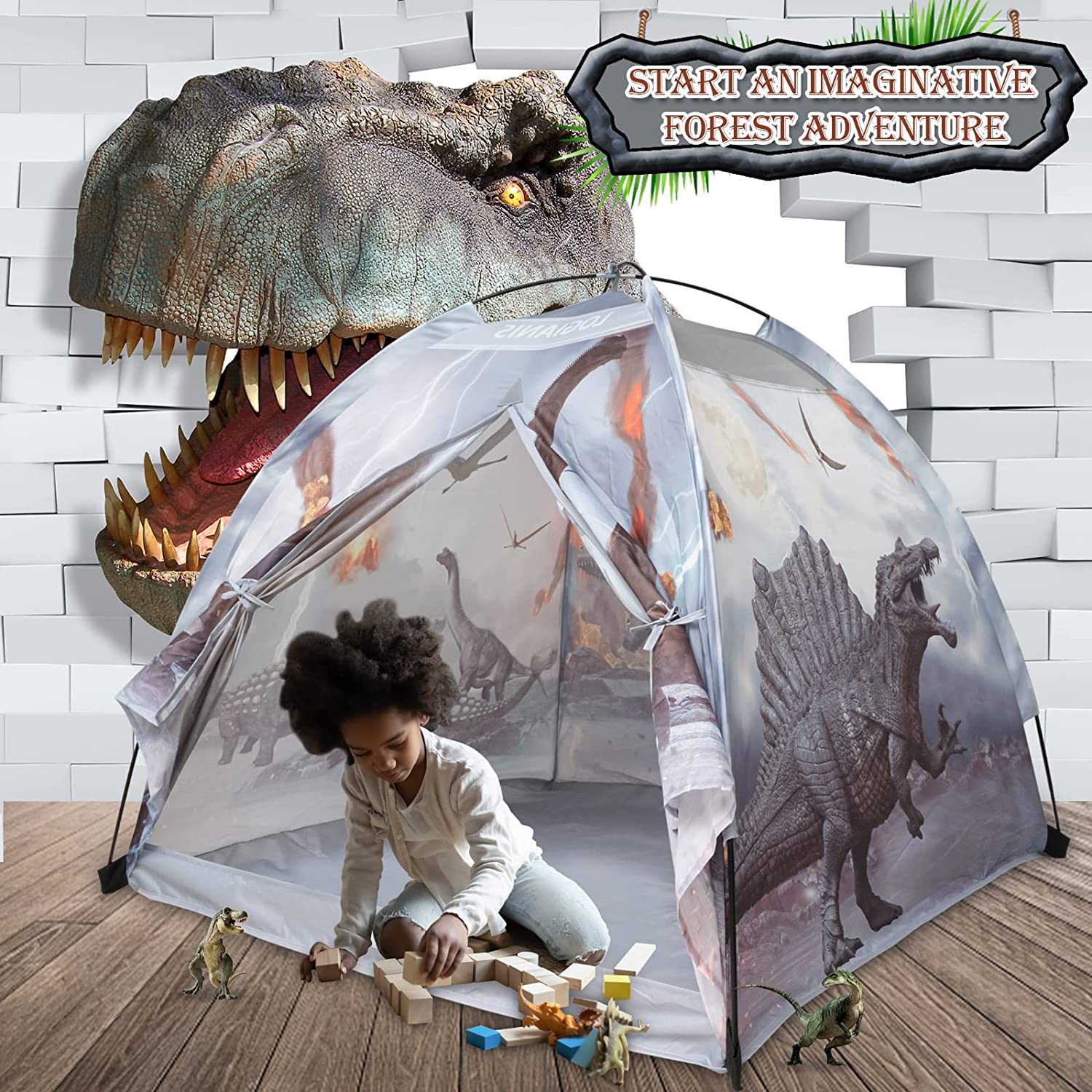 - 1 x Παιδική Σκηνή με Δεινοσαύρους για Παιχνίδι 122x122x107cm έως 3 Παιδιά