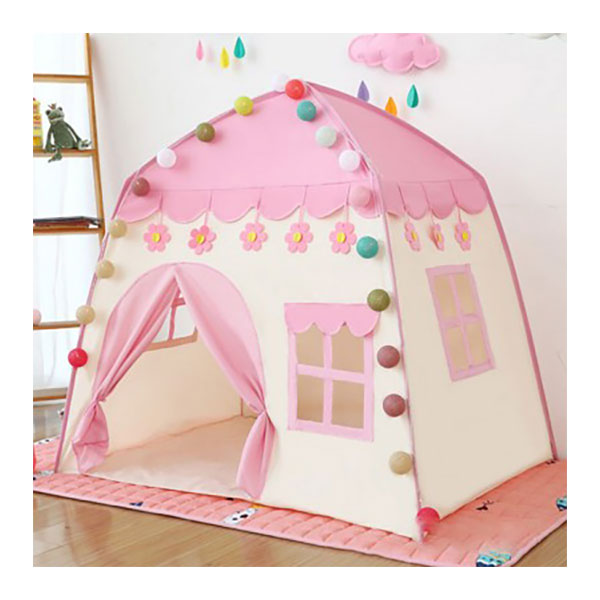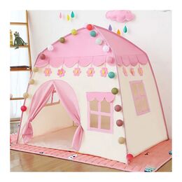 Παιδική Σκηνή Pop-Up Πριγκηπικό Σπιτάκι με Κουρτίνες & Παράθυρα για 3+ Eτών 130x100x100cm Ροζ Playtent