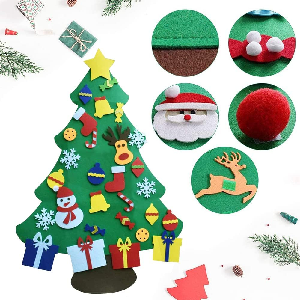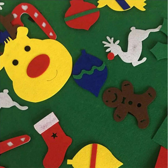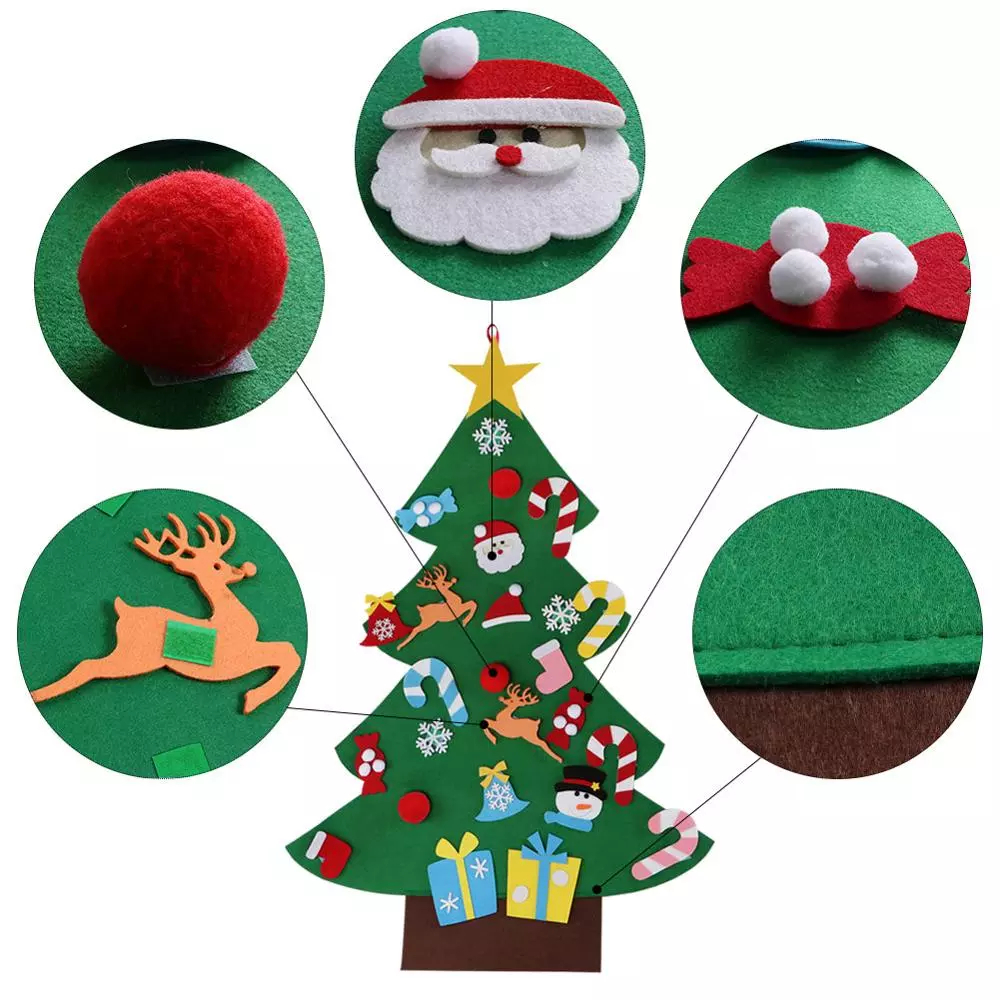 Παιδική Χριστουγεννιάτικη DIY Κατασκευή Τοίχου από Τσόχα - Χριστουγεννιάτικο Δέντρο 100cm με 29 Στολίδια