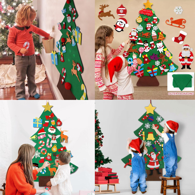Το παιδικό Χριστουγεννιάτικο DIY Δέντρο Τοίχου από τσόχα προσφέρει έναν ασφαλή και διαδραστικό τρόπο για να συμμετέχουν τα παιδιά στη γιορτινή διακόσμηση.