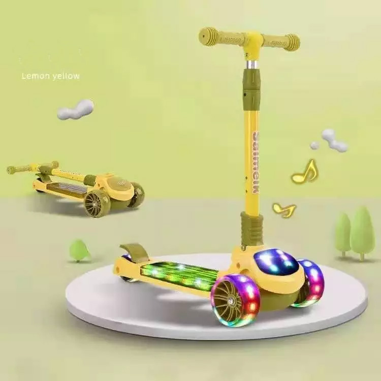 Παιδικό Αναδιπλούμενο Scooter - Πατίνι με Πίσω Φρένο - LED Φωτάκια & Μουσική - Κίτρινο
