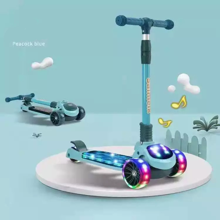 Παιδικό Αναδιπλούμενο Scooter - Πατίνι με Πίσω Φρένο - LED Φωτάκια & Μουσική - Μπλε